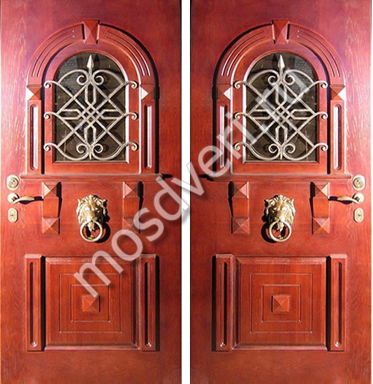 Элитная дверь из массива дуба с дверным молотком, стеклом и ковкой — объединяет эстетичность и высокую надёжность.