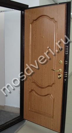 Прочность плиты МДФ недостаточна для полной защиты дома от взлома. Поэтому модели компании Мосдвери собраны на стальном каркасе из труб квадратного сечения и усилены железным листом толщиной 2 – 3 мм. Полости каркаса заполнены минеральным или полимерным утеплителем.